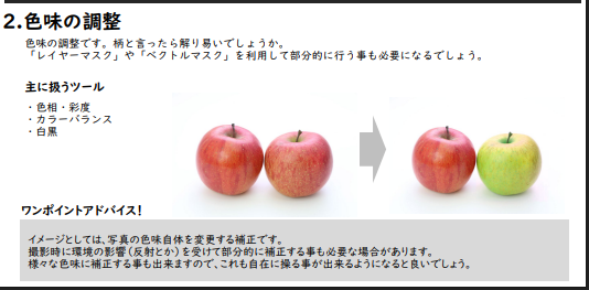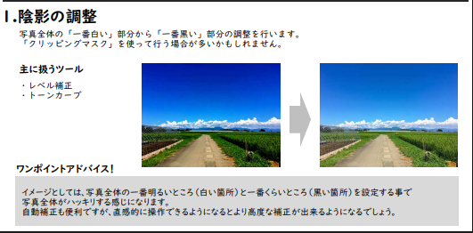 色調補正の目的は、色を調整したり、鮮やかさを調整したり、明るさを調整したりさまざまです。