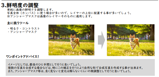 (素材写真の明るさを調整し、コントラストをくっきりさせる)
