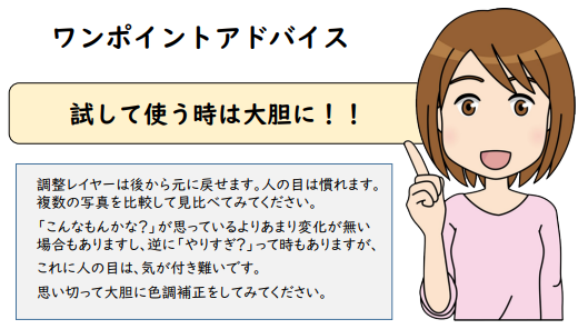 ※部分的に調整する場合は、レイヤーマスク(選択範囲)を併用。